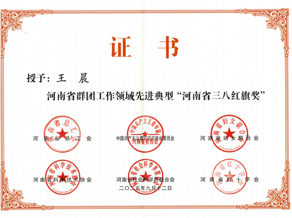 “河南省三八红旗奖”由省总工会、团省委、省妇联等六部门联合评定,是全省女性领域的重要荣誉,旨在表彰各行业中贡献卓著、事迹突出的优秀女性典型。王晨同志自2016年加入中原农险以来,历经多岗位历练,始终以“尚德聚智、惠农利民”的企业使命为指引,用实干践行初心,以实绩扛起责任,此前已累计荣获市级以上荣誉10余项。此次获奖,不仅是评委会对其个人专业能力与奉献精神的高度认可,更集中展现了中原农险女性职工“顾大局、勇担当、善作为、甘奉献”的巾帼风采,也是公司工会持续挖掘、推荐优秀职工的重要成果。