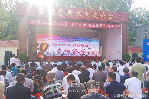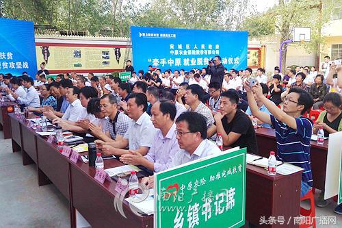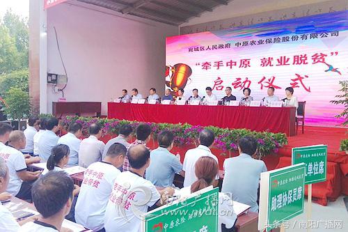 9月15日,宛城区举办牵手中原就业脱贫启动仪式。中原农业保险股份有限公司总裁姜华,市委常委、宣传部长张富治出席启动仪式。