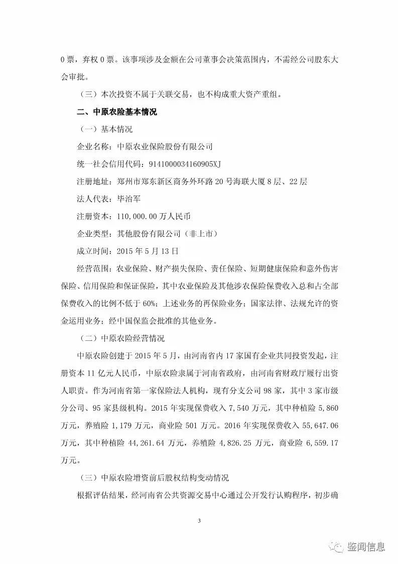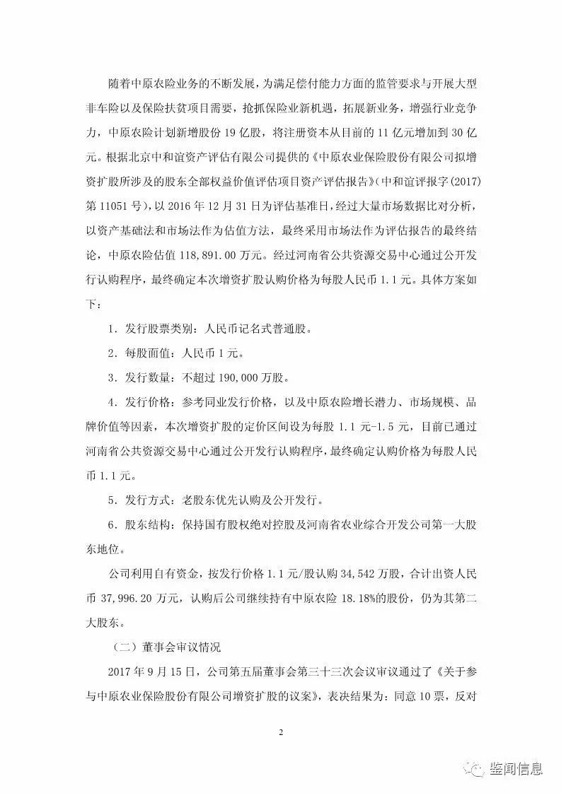 河南第一家保险法人机构中原农业保险股份有限公司(以下简称:中原农险)增资扩股有了最新进展!