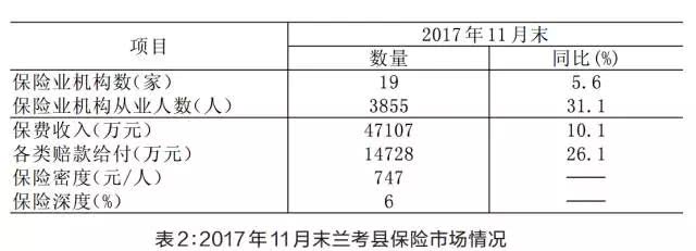 6.保险市场迅速发展,保障效应显著增强。11月末,兰考县保费收入4.7亿元,同比增长10.1%。已实现大病保险对城乡居民全覆盖,困难群众保险对特困人群全覆盖;小额信贷保证保险支持小微企业融资1.9亿元、农户融资6596万元;中原农险承保全县蔬菜大棚5400余亩、畜牧养殖大棚1700余座,提供风险保障3.8亿元;人保财险与华信期货公司合作,签出河南省首单玉米期货区间价格保险。