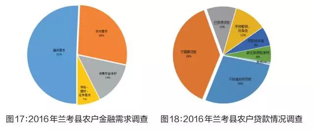 4.满意度指数不断提升,金融服务持续改善。三季度末,兰考县普惠金融满意度指数为0.18,较2015年末提升0.04,全省排名提升9位;贷款满意度和保险满意度的边界距离得分分别为0.19、0.16;农户、小微企业贷款满意度为55.4%,高于全省平均水平1个百分点。