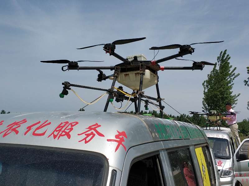 4月26日上午,南阳邓州市彭桥镇丁北村麦田里,10多架无人机一字排开,在中原农险“三农”服务队统一组织下,无人机在轰鸣声中飞向空中,开始给万亩麦田喷洒农药防虫治病。据悉,这是中原农险无偿服务“三农”的一项创新性举措。