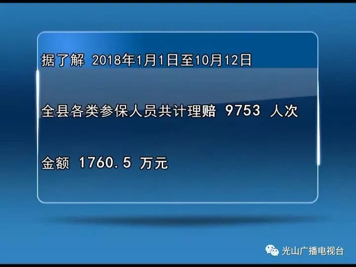 据了解,2018年1月1日至10月12日,全县各类参保人员共计理赔9753人次,金额1760.5万元,其中建档立卡贫困户共计理赔8142人次,金额680万元;普通参合农民共计理赔1611人次,金额1080.5万元。