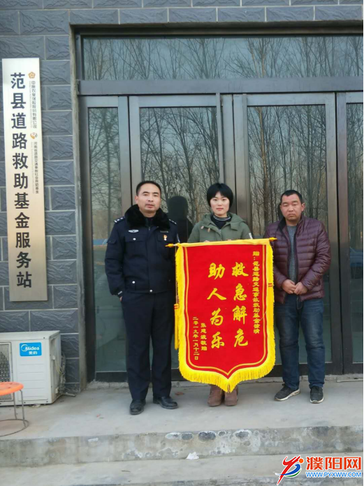 1月17日上午,张某来到中原农业保险股份有限公司(以下简称“中原农险”)范县道路救助基金服务站,将一面书有“救急解危,助人为乐”的大红锦旗送到服务站的工作人员手中,并表达了自己真诚的感谢。