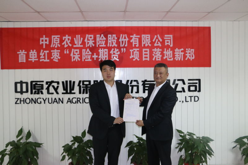 投实消息:4月29日,中原农业保险股份有限公司与好想你健康食品股份有限公司签署战略合作协议,为国内首个红枣“保险+期货”项目启动做好准备。4月30日上午,伴随红枣期货上市开盘的同时,中原农业保险公司出具了第一张红枣“保险+期货”保单并入场对冲风险,国内使用期货市场对冲红枣价格风险的首张保单随之诞生。