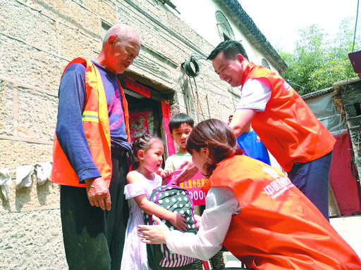 当天上午,在淇县黄洞乡纣王殿村,中原农险鹤壁市服务组工作人员为党浩哲等13名贫困留守儿童送去了书包、笔、笔记本、文具盒、水杯等慰问品,同时还赠送他们每人一份保额为6万元的学生幼儿意外伤害险,为他们的健康成长送去一份关爱,送去一份守护。“感谢叔叔、阿姨们送给我们的礼物,我很喜欢。”7岁的党浩哲高兴地说。