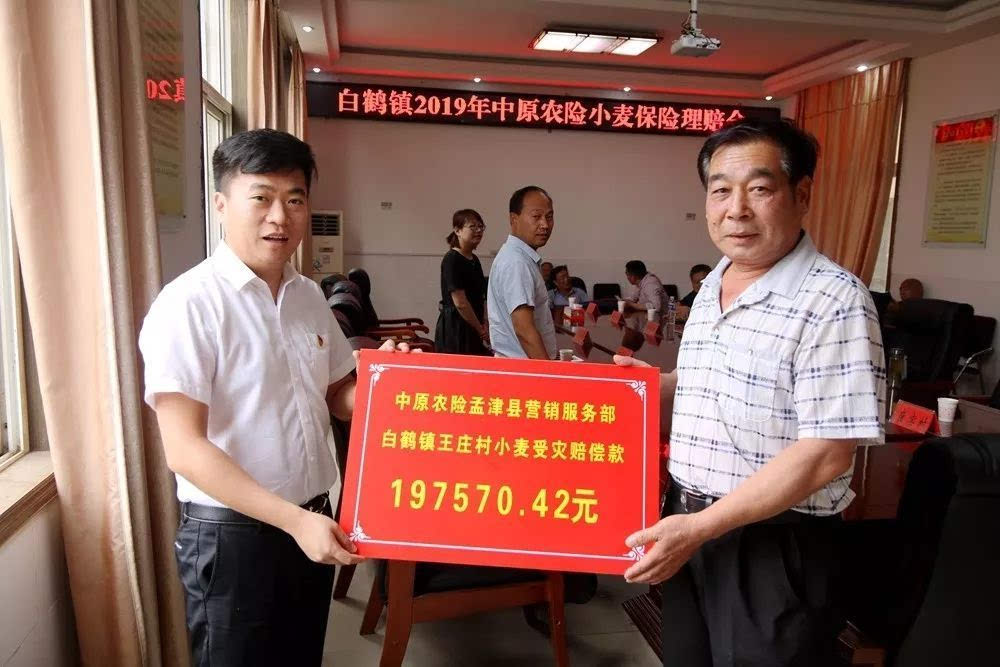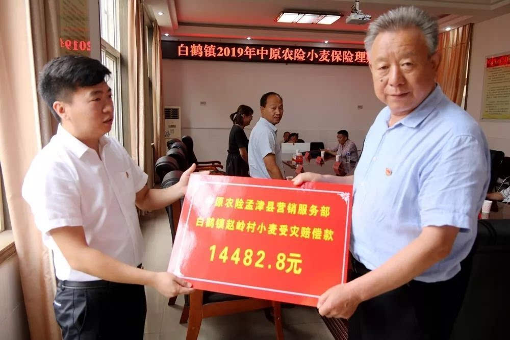 2019年6月21日上午,在咱白鹤后二楼会议室举行了白鹤镇小麦受灾理赔款发放仪式。中原农险孟津县营销服务部经理王玛珂、副镇长周晓晖、农业服务中心主任程志伟、马院村种植大户刘武超、赵岭村、王庄村、崔窑村、马院村、柿林村、长秋村受灾代表参加了此次发放仪式。