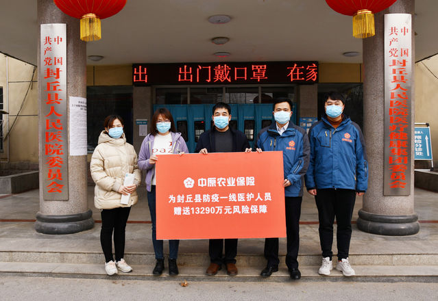 中国青年报客户端郑州2月1日电(中青报·中青网记者 潘志贤)2月1日,中原农业保险股份有限公司免费为河南省封丘县人民医院从事一线疫情防治的443名医护人员入保险,每人保额30万元,为他们在工作中和上下班途中因意外、新型冠状病毒肺炎防治过程中受伤害导致的身故及残疾提供风险保障,共提供1.329亿元的风险保险保障。