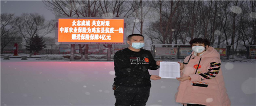 疫情就是命令,防控就是责任。面对疫情,鸡东县众多医护人员和抗疫联防人员不惧艰险、不畏生死、奔赴在战“疫”第一线,始终坚守岗位,守护着人民群众的生命安全。为了给奋战在鸡东抗疫一线的医护和联防人员筑起一份保障、送去一份关爱,中原农业保险股份有限公司充分发挥保险保障职能,勇担社会责任,向鸡东县1000名奋战在抗疫一线的医护和联防人员捐赠专属保险,保障保额累计达4亿元,为抗疫一线送上保险“防护服”,切实保障抗疫一线的医护和联防人员的身体健康和生命安全。