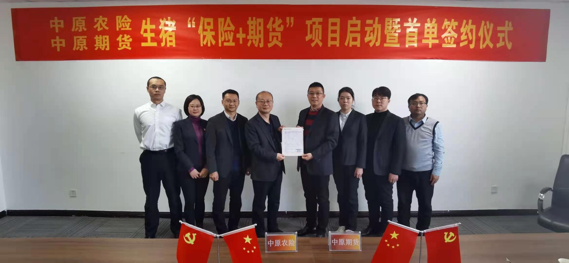 人民网郑州1月8日电(杨晓娜)1月8日,随着大连商品交易所的钟声响起,生猪期货挂牌交易。9点整,中原农业保险股份有限公司联合中原期货有限公司向平顶山汝州市鼎成牧业有限公司出具了全国首张生猪“保险+期货”保单,产品以LH2109上市首日开盘价为保险价格,采用亚式期权结构设计,承保生猪700头。此外,中原农险与中原期货还通过“保险+期货”项目承保了平顶山宝丰县、叶县3个场区,900余头生猪。这也是河南省“保险”与“期货”领域的金融豫军协同助力全省畜牧业高质量发展的创新之举。