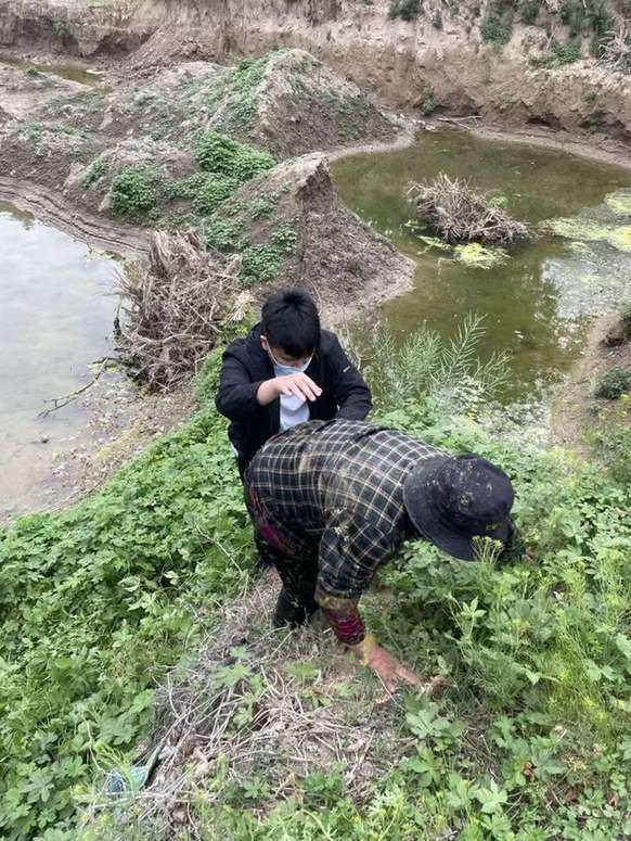 “抓紧了,别松手!”5月11日下午,商丘市柘城县慈圣镇王庄村附近一水塘旁边,一老一少两名男子合力,用一根大树枝把水塘里的女子救上岸。这一幕,被现场的村民拍了下来。