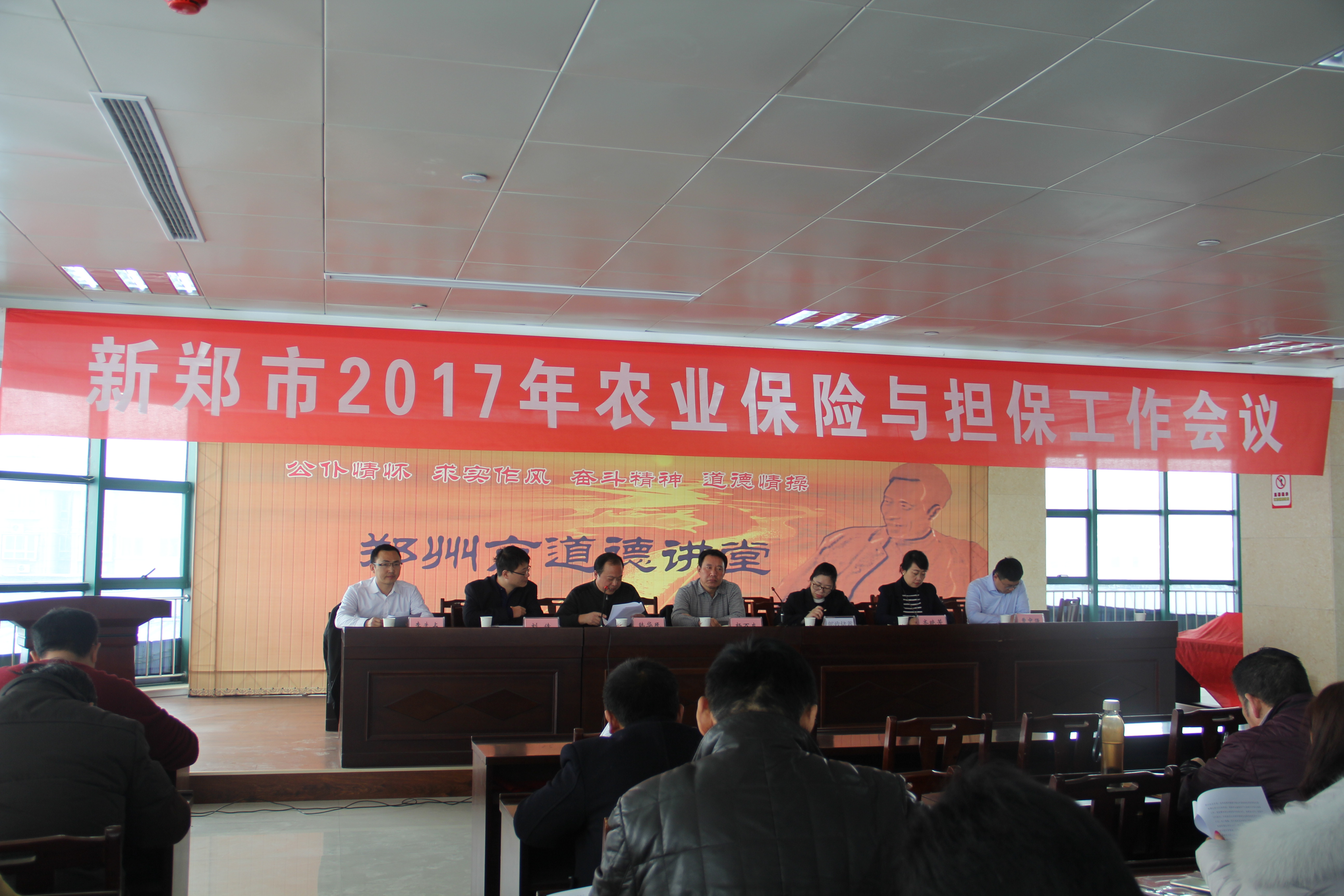 为响应中央支农惠农政策,建设生态郑州、美丽郑州,配合创新金融支农方式,推进特色农业保险和担保,构建政府、银行、保险、担保功能整合、工作联动、效益叠加的行动机制,根据《郑州市人民政府关于印发郑州市都市生态农业保险与担保专项实施方案的通知》(郑政文 [2017]26号)文和《新郑市农业农村工作委员会关于召开农业保险与担保工作会议的通知》(新农委[2017]16号)文,2017年2月22日上午,在农委四楼会议室,由新郑市农委主持召开了“新郑市2017年农业保险与担保工作会议”。
