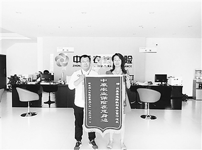 日前,获嘉县的孙新菊冒着炎炎酷暑,将一面书写着“雪中送炭,中原农业保险在您身边”的锦旗送到中原农业保险股份有限公司获嘉县营销服务部的工作人员手中,感谢他们高效及时的救助服务(如图)。