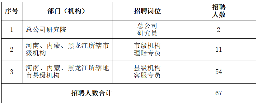 岗位详情见附件《中原农业保险股份有限公司招聘岗位及要求》。