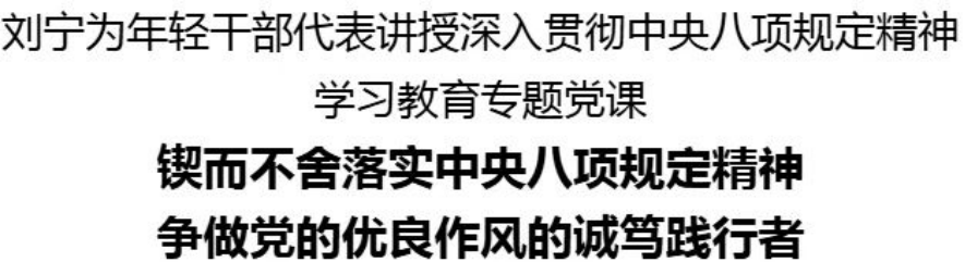 刘宁强调,我们党始终高度重视作风建设,在不同历史阶段培育形成了具有时代意义的优良作风和光荣传统。特别是党的十八大以来,以习近平同志为核心的党中央把制定和落实中央八项规定作为开局破题之作、徙木立信之举,以小切口撬动大变局,以彻底的自我革命精神荡顽瘴、去沉疴、除痼疾,推动百年大党在革命性锻造中不断焕发蓬勃生机。要把学习领会习近平总书记关于加强党的作风建设的重要论述作为必修课、常修课,准确把握重大意义、本质核心、重大举措、重点任务、科学方法、制度保障,真正学出坚定信仰、为民情怀和使命担当。要深刻把握深入贯彻中央八项规定精神的成效经验,坚持以上率下、人民至上、从严要求,以实际行动坚定拥护“两个确立”、坚决做到“两个维护”。要深刻认识违反中央八项规定精神的严重危害,坚持纠“四风”和树新风并举,以优良党风带动社风民风向上向善。